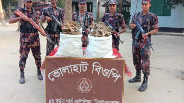 ৫৯ বিজিবি’র সাড়ে ৭৬ লক্ষ টাকার কচ্ছপের হাড় এবং পাতার বিড়ি উদ্ধার