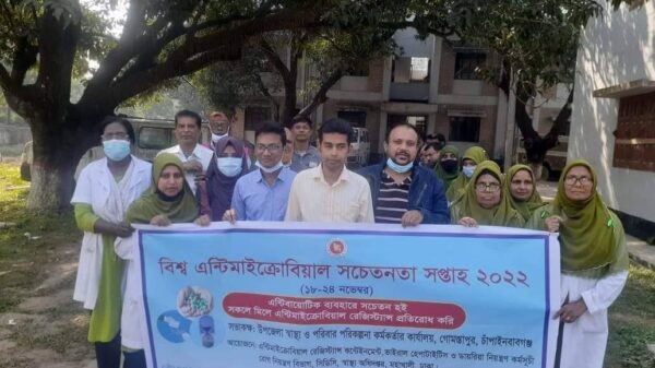 চাঁপাইনবাবগঞ্জের গোমস্তাপুরে বিশ্ব এন্টি মাইক্রোবিয়াল সচেতনতা সপ্তাহ উদযাপন উপলক্ষে এ্যান্টিবায়টিকের অপব্যবহার রোধে সোমবার সচেতনতা মূলক সভা ও র্যালী হয়েছে। উপজেলা স্বাস্থ্য বিভাগ আয়োজিত এ সভায় সভাপতিত্ব করেন উপজেলা স্বাস্থ্য কর্মকর্তা ডা. মোঃ আব্দুল হামিদ। বক্তব্য রাখেন ডা. মোসা. ইসরাত-ই-নূরীন, ডা. মুহা. খালিদুর রহমান, ডা. মোঃ ইসমাইল হোসেন ও ডা. শারমিন আকতার। সভায় রেজিস্টার্ড চিকিৎসকের পরামর্শ ব্যতিত এন্টিবায়োটিক ঔষুধ গ্রহন না করার পরামর্শ দেয়া হয়। এছাড়া জনগণের মাঝে সচেতনতা সৃষ্টিতে রহনপুর পৌর এলাকায় মাইকিং করা হবে বলে সভায় জানানো হয়।