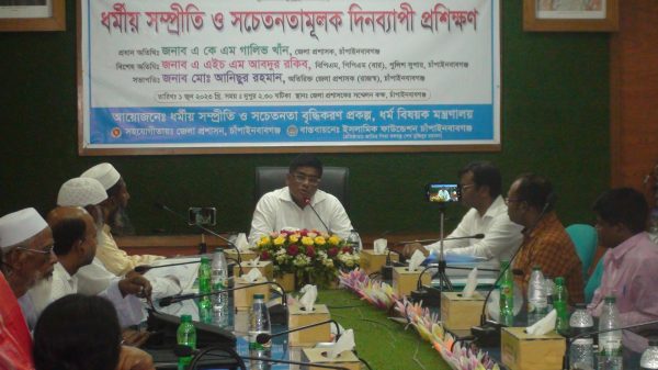 ধর্মীয় সম্প্রীতি ও সচেতনতামূলক কর্মশালা হয়েছে চাঁপাইনবাবগঞ্জে। বৃহস্পতিবার জেলা প্রশাসকের সম্মেলন কক্ষে দিনব্যাপী এই কর্মশালা হয়। ধর্ম বিষয়ক মন্ত্রণালয়ের আয়োজনে ও জেলা প্রশাসনের সহযোগিতায় ধর্মীয় সম্প্রীতি ও সচেতনতামূলক বৃদ্ধিকরণ প্রকল্পের আওতায় এই কর্মশালায় প্রধান অতিথি ছিলেন জেলা প্রশাসক এ কে এম গালিভ খাঁন।