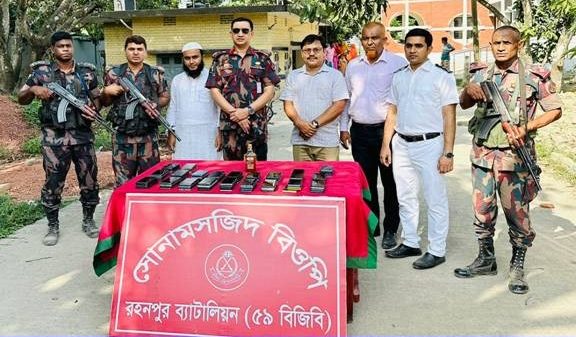 গোপন সংবাদে অভিযান চালিয়ে সোনামসজিদ স্থলবন্দর এলাকায় ৫৯ বিজিবি’র ও টাস্কফোর্স এর অভিযানে মালিকবিহীন ৮৫টি ভারতীয় মোবাইল ফোন, ১ বোতল ভারতীয় মদ, ৩টি ভারতীয় ট্রাক এবং ১৬২ টন ভারতীয় পাথর আটক জব্দ করা হয়েছে।