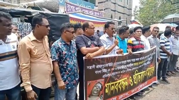 সাংবাদিক নাদিম হত্যার প্রতিবাদে জয়পুরহাটে বিক্ষোভ মিছিল মানববন্ধন