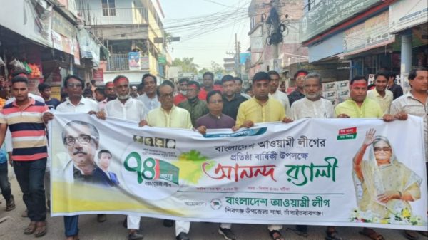 চাঁপাইনবাবগঞ্জের শিবগঞ্জে আওয়ামী লীগের ৭৫তম প্রতিষ্ঠাবার্ষিকী পালিত হয়েছে। এ উপলক্ষে শুক্রবার উপজেলা আওয়ামীলীগের ব্যানারে শিবগঞ্জ ডাকবাংলো চত্বরে জাতীয় ও দলীয় পতাকা উত্তোলন করা হয়। পরে উপজেলা পরিষদ সংলগ্ন মুজিব মুরালে পুষ্পমাল্য অর্পণ করা হয়। বিকেলে শিবগঞ্জ ডাকবাংলো চত্বর থেকে একটি আনন্দ র্যালি বের হয়ে গুরুত্বপূর্ণ এলাকা প্রদক্ষিণ শেষে পুনরায় সেখানে এসে শেষ হয়। পরে প্রতিষ্ঠাবার্ষিকীর কেক কাটা হয়। অনুষ্ঠানে উপজেলা আওয়ামী লীগের সভাপতি আবু আহমেদ নজমুল কবির মুক্তার সভাপতিত্বে ও সাধারণ সম্পাদক আতিকুল ইসলাম টুটুল খানের সঞ্চালনায় অন্যদের মধ্যে উপস্থিত ছিলেন সংসদ সদস্য ও জেলা আওয়ামীলীগের যুগ্ম সাধারণ সম্পাদক ডা. সামিল উদ্দিন আহমেদ শিমুল, জেলা আওয়ামীলীগের সহসভাপতি ও উপজেলা পরিষদ চেয়ারম্যান সৈয়দ নজরুল ইসলাম, পৌর মেয়র সৈয়দ মনিরুল ইসলাম, পৌর আওয়ামী লীগের সাধারণ সম্পাদক গোলাম কিবরিয়া, জেলা স্বেচ্ছাসেবকলীগের সভাপতি আবদুল আওয়াল গণি জোহা, উপজেলা যুবলীগের সাধারণ সম্পাদক তোসিকুল ইসলাম টিসু, উপজেলা ছাত্রলীগের সভাপতি সমিউর রহমান বাবু, সাধারণ সম্পাদক আবদুল্লাহ আল বাকী, পৌর ছাত্রলীগের সভাপতি আলীরাজ ও সাধারণ সম্পাদক রকি ইসলাম ডলারসহ আওয়ামী লীগ ও অঙ্গ সহযোগি সংগঠনের নেতৃবৃন্দ।