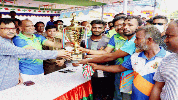 রাজশাহীর বাগমারায় জাতির জনক বঙ্গবন্ধু শেখ মুজিবুর রহমান জাতীয় গোল্ডকাপ ফুটবল টুর্নামেন্ট উপজেলা পর্যায়ে ফাইনাল খেলা ও পুরস্কার বিতরণী অনুষ্ঠান হয়েছে। শনিবার সকালে বাগমারা পাইলট উচ্চ বিদ্যালয় মাঠে অনুষ্ঠিত হয়। পুরস্কার বিতরনী অনুষ্ঠানে প্রধান অতিথি হিসেবে উপস্থিত ছিলেন রাজশাহী-৪ (বাগমারা) আসনের সংসদ সদস্য ইঞ্জিনিয়ার এনামুল হক। উপজেলা প্রশাসনের আয়োজনে বঙ্গবন্ধু শেখ মুজিবুর রহমান জাতীয় গোল্ডকাপ ফুটবল টুর্নামেন্ট (অনূর্ধ্ব-১৭)-২০২৩ বাগমারা পাইলট উচ্চ বিদ্যালয় মাঠে উপজেলার ১৬ টি ইউনিয়ন ও ২টি পৌরসভার মোট ১৮টি ফুটবল দল খেলায় অংশ গ্রহণ করে। উপজেলা পর্যায়ে চাম্পিয়ান শিপ খেলা শেষে ফাইনাল খেলায় অংশ গ্রহণ করেন মাড়িয়া ইউনিয়ন এবং দ্বীপপুর ইউনিয়ন দল। খেলায় প্রথমার্ধে ১-০ গোলে দ্বীপপুর ইউনিয়ন এগিয়ে যায়। দ্বিতীয়ার্ধের শুরুতেই মাড়িয়া ইউনিয়ন একটি গোল করে সমতায় ফিরে। ১-১ গোলে শেষ হয় খেলাটি। পরে ট্রাইবেকার পদ্ধতিতে ৪-৩ গোলে মাড়িয়া ইউনিয়নকে পরাজিত করে উপজেলা পর্যায়ে চ্যাম্পিয়ন হওয়ার গৌরব অর্জন করে দ্বীপপুর ইউনিয়ন দল। খেলা শেষে উপজেলা ক্রীড়া সংস্থার আয়োজনে পুরস্কার বিতরণ অনুষ্ঠানের আয়োজন করা হয়। এতে উপজেলা নির্বাহী কর্মকর্তা এ,এফ,এম, আবু সুফিয়ানের সভাপতিত্বে প্রধান অতিথি হিসেবে উভয় দলের মধ্যে পুরস্কার তুলে দেন বাগমারা আসনের সংসদ সদস্য ইঞ্জিনিয়ার এনামুল হক। এ সময় খেলায় সহযোগীতা করায় বিভিন্ন ব্যক্তি ও সংগঠনকে সন্মাননা ক্রেষ্ট প্রদান করেন অথিতি বৃন্দ। অনুষ্ঠানে বিশেষ অতিথি হিসাবে উপস্থিত ছিলেন, বাগমারা উপজেলা পরিষদের চেয়ারম্যান বীর মুক্তিযোদ্ধা অনিল কুমার সরকার। অন্যান্যের মধ্যে উপস্থিত ছিলেন, উপজেলা ভাইস চেয়ারম্যান আসাদুজ্জামান আসাদ, মমতাজ আক্তার বেবী, ভবানীগঞ্জ পৌরসভার মেয়র আব্দুল মালেক মন্ডল, উপজেলা কৃষি কর্মকর্তা আব্দুর রাজ্জাক, প্রকল্প বাস্তবায়ন কর্মকর্তা রাজীব আল রানা, উপজেলা আওয়ামী লীগের সাধারণ সম্পাদক ও চেয়ারম্যান অধ্যক্ষ গোলাম সারোয়ার আবুল, বাগমারা প্রেসক্লাবের সভাপতি আফাজ্জল হোসেন, দ্বীপপুর ইউনিয়নের চেয়ারম্যান বিকাশ চন্দ্র ভৌমিক, মাড়িয়া ইউনিয়নের চেয়ারম্যান রেজাউল হক, বাসুপাড়া ইউনিয়নের চেয়ারম্যান লুৎফর রহমান, উপজেলা আওয়ামী লীগের সহ-সভাপতি মতিউর রহমান, দপ্তর সম্পাদক নূরুল ইসলাম, মহিলালীগের সভাপতি কহিনুর বানু, সাধারণ সম্পাদক জাহানারা বেগম, যুব মহিলা লীগের সভাপতি শাহিনুর খাতুন, সাধারণ সম্পাদক পারভীন আক্তার। রেফারী হিসেবে খেলাটি পরিচালনা করেন উপজেলা ক্রীড়া সংস্থার সাধারণ সম্পাদক রফিকুল ইসলাম মীর ও সহযোগী হিসেবে ছিলেন রহিদুল ইসলাম। এছাড়া ধারাভাষ্য