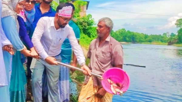 নাটোরের নলডাঙ্গায় জাতীয় মৎস্য সপ্তাহে মাছের পোনা অবমুক্ত