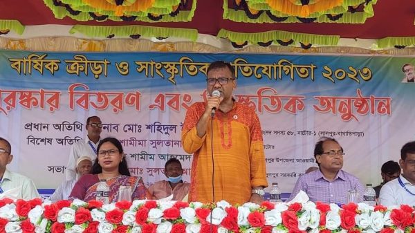 নাটোরের লালপুর উপজেলার আব্দুলপুর সরকারি কলেজের বার্ষিক ক্রীড়া ও সাংস্কৃতিক প্রতিযোগিতা পুরুস্কার বিতরণ ও সাংস্কৃতিক অনুষ্ঠানের প্রধান অতিথি হিসেবে উপস্থিত থেকে বক্তব্য রাখেন জেলা আওয়ামীলীগের সহ-সভাপতি ও স্থানীয় সংসদ সদস্য শহিদুল ইসলাম বকুল। বুধবার দুপুরে আব্দুলপুর সরকারি কলেজ প্রাঙ্গনে বাষিক ক্রীড়া ও সাংস্কৃতিক প্রতিযোগিতা পুরুস্কার বিতরণ অনুষ্ঠানে আব্দুলপুর সরকারী কলেজের অধ্যক্ষ মোঃ সুলতান প্রামাণিকের সভাপতিত্বে আলোচনা সভা অন্যন্যের মধ্যে বক্তব্য রাখেন উপজেলা নির্বাহী অফিসার শামীমা সুলতানা, উপজেলা মাধ্যমিক শিক্ষা অফিসার ওয়াজেদ আলী মৃধা সহ কলেজ প্রতিষ্ঠাতা সদস্য, শিক্ষক মন্ডলী, ছাত্র-ছাত্রী। পরে বার্ষিক ক্রীড়া প্রতিযোগিতায় বিজয়ীদের মাঝে পুরস্কার তুলে দেন সাংসদ শহিদুল ইসলাম বকুল সহ অতিথিরা। সন্ধ্যায় মনোজ্ঞ সাংস্কৃতিক অনুষ্ঠানের আয়োজন করা হয়েছে।