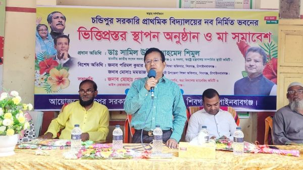 এ উপলক্ষে চন্ডিপুর সরকারি প্রাথমিক বিদ্যালয় চত্বরে অনুষ্ঠিত মা সমাবেশে বিদ্যালয় ম্যানেজিং কমিটির সভাপতি গোলাম কিবরিয়ার সভাপতিত্বে প্রধান অতিথির বক্তব্যে সংসদ সদস্য ডা. সামিল উদ্দিন আহমেদ শিমুল বলেন, প্রধানমন্ত্রী শেখ হাসিনার বলিষ্ঠ ও দক্ষ নেতৃত্বে সারাদেশে উন্নয়নের জোয়ার বইছে। সবচেয়ে বেশি উন্নয়ন হয়েছে শিক্ষাখাতে। শিক্ষাখাতে অভাবনীয় উদ্যোগ নিয়েছে সরকার। নতুন নতুন স্কুল-কলেজ, কারিগরি শিক্ষাপ্রতিষ্ঠান ও মাদরাসাগুলোতে আধুনিক ভবন নির্মাণ করা হয়েছে। এ সময় উপস্থিত ছিলেন, উপজেলা নির্বাহী কর্মকর্তা আবুল হায়াত, উপজেলা পরিষদ চেয়ারম্যান সৈয়দ নজরুল ইসলাম, শিবগঞ্জ পৌর মেয়র সৈয়দ মনিরুল ইসলাম, এলজিইডির উপজেলা প্রকৌশলী হারুন অর রশিদসহ স্থানীয় সরকারি কর্মকর্তা ও আওয়ামীলীগ নেতৃবৃন্দ।
