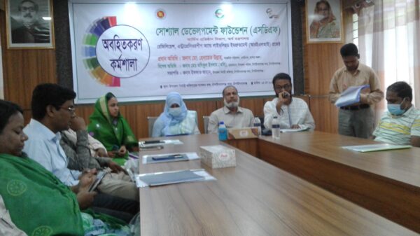 এসময় প্রধান অতিথির বক্তব্যে হেদায়েত উল্লাহ বলেন, সরকারের এ প্রকল্পের মাধ্যমে দারিদ্র বিমোচন, সক্ষমতা বৃদ্ধি ও কর্মসংস্থান সৃজন আর্থিক সহায়তা, গ্রামে পিছিয়ে পড়া নারীদের নারীর ক্ষমতায়ন ও জীবনমান উন্নয়ন এবং কভিড-১৯ মহামারীর ফলে ক্ষতিগ্রস্থ জনগোষ্ঠীর জীবনমান উন্নয়নে কুটির ক্ষুদ্র ও মাঝারী উদ্যোক্তাদের আর্থিক প্রণোদনা প্রদান করা হবে। উল্লেখ্য, ২০০১ সালে সোশ্যাল ডেভেলপমেন্ট ফাউন্ডেশন (এসডিএফ)’র প্রতিষ্ঠার পর থেকেই দারিদ্র বিমোচন, সক্ষমতা বৃদ্ধি ও কর্মসংস্থান সৃষ্টি, আর্থিক সহায়তার মাধ্যমে অতিদরিদ্র ও দরিদ্র জনগোষ্ঠিকে সম্পৃক্তকরণ, খাদ্য নিরাপত্তা নিশ্চিতকরণ, স্থায়ী ও টেকসই সংগঠন তৈরী, সুবিধাবঞ্চিত ও সহায়সম্বলহীনদের জন্য এককালিন অনুদান প্রদান, গ্রামীন অবকাঠামো উন্নয়ন, বেকার যুবকদের কর্মসংস্থান, জীবিকা উন্নয়ন, স্বাস্থ্য ও পুষ্টি সহায়তা প্রদান, করোনা মহামারীতে কুটির, ক্ষুদ্র ও মাঝারী উদ্যোক্তাদের আর্থিক প্রণোদনা প্রদান করে দরিদ্র জনগোষ্ঠিকে এগিয়ে নিয়ে কাজ করে যাচ্ছে। দেশের ৭ লক্ষ ৪৪ হাজার উপকারভোগীদের নিয়ে কাজ করছে এসডিএফ।