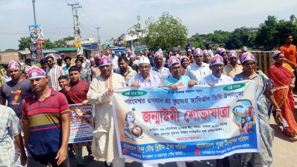 দুষ্টের দমন সৃষ্টের পালন করার জন্য সনাতন ধর্মের মহাবতার ভগবান শ্রীকৃষ্ণের ৫২৪৯ তম শুভ আবির্ভাব তিথি আজ। এই উপলক্ষে চাঁপাইনবাবগঞ্জের গোমস্তাপুরে সনাতন ধর্মালম্বীদের পরমেশ্বর ভগবান শ্রীকৃষ্ণের শুভ আবির্ভাব তিথি জন্মাষ্টমী উদযাপনে ধর্মীয়ভাব গাম্ভীর্য ও আনন্দ উৎসব এর মধ্যে দিয়ে পালিত হচ্ছে দিনটি। এরই ধারাবাহিকতায় আলোচনা সভা ও শোভাযাত্রার আয়োজন করা হয়েছে। বুধবার সকাল ১০ টায় পূজা উদযাপন পরিষদ গোমস্তাপুর উপজেলা ও হিন্দু বৌদ্ধ খ্রিস্টান ঐক্য পরিষদ শাখার আয়োজনে একটি র্যালী রহনপুর সার্বজনীন দূর্গা মন্দির থেকে বের হয়ে রহনপুর পৌর এলাকার বিভিন্ন সড়ক প্রদক্ষিন করে শ্যাম রায় মিলতনী সংঘ দূর্গা মন্দিরে এসে শেষ হয়। এ সময় উপস্থিত ছিলেন মহন্ত মহারাজ ক্ষিতিশ চন্দ্র আচারী, গোমস্তাপুর পূজা উদযাপন পরিষদের সাবেক সভাপতি মনোতোষ চক্রবর্তী, সাবেক সাংগঠনিক সম্পাদক, সুমন কুমার সাহাসহ সনাতন ধর্মাবলম্বীরা।