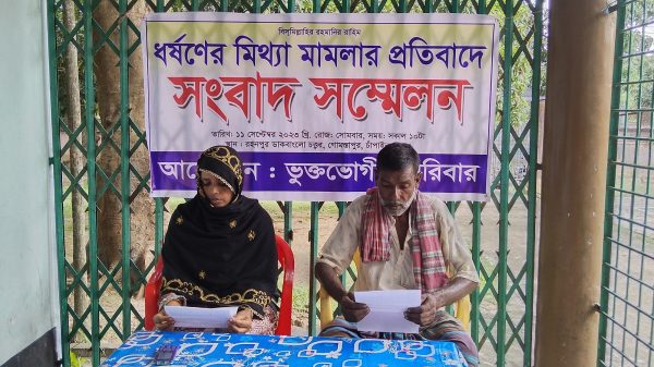 চাঁপাইনবাবগঞ্জের গোমস্তাপুর উপজেলার গোমস্তাপুর ইউনিয়নের বেগমনগর গ্রামের দিনমজুর শফিকুল ইসলাম কাটুর বিরুদ্ধে ধর্ষণের একটি মামলা দায়ের করায় সেটিকে মিথ্যা মামলা দাবী করে প্রত্যাহারের দাবীতে সংবাদ সম্মেলন করেছে ভুক্তভোগীর পরিবার। সোমবার (১১ সেপ্টেম্বর) সকালে রহনপুরস্থ জেলা পরিষদ ডাকবাংলোয় এ সংবাদ সম্মেলন অনুষ্ঠিত হয়। সংবাদ সম্মেলনে লিখিত বক্তব্য রাখেন, শফিকুল ইসলাম কাটুর স্ত্রী মোসাঃ রুবেদা খাতুন। এ সময় উপস্থিত ছিলেন শফিকুল ইসলাম কাটুর পিতা আব্দুর রহিম। লিখিত বক্তব্যে বলা হয়, গত ১৪ আগষ্ট একই গ্রামের আনারুল ইসলামের স্ত্রী মোসাঃ তাসলেমা বেগম গোমস্তাপুর থানায় তার ৯ বছরের শিশুকন্যা ফাতেমা আক্তার মিম কে ধর্ষণের কারণে আমার স্বামীর বিরুদ্ধে মামলা দিয়ে হয়রানি করা হচ্ছে। তিনি দাবী করেন, ধর্ষণের কোন ঘটনায় ঘটেনি। এটি একটি ষড়যন্ত্রমূলক সাজানো ঘটনা। আমার স্বামী সেদিন কাজ শেষে বাড়ী এসে অসুস্থ হয়ে পড়ে। ঔষধ খেয়ে সে ঘুমিয়ে যায়। ঘটনার দিন ও সময়ে আমার স্বামী বাসায় ছিল। তিনি আরও বলেন, ঘটনার আগে বাদীর আত্মীয় ইউনিয়ন ছাত্রলীগের নেতা ইমনের নেতৃত্বে সুজন, তাহির, মনিরসহ কয়েকজন আমাদের বাড়ী এসে চাঁদা দাবী করে। আমরা চাঁদা দিতে রাজি না হলে এই মিথ্যা মামলা করা হয়েছে। এ ব্যাপারে বাদীর মোবাইল ০১৭৬২-৩১৯২৫৮ নম্বর এ বারবার রিং দিয়েও মোবাইল বন্ধ পাওয়া যায়। এ বিষয়ে ছাত্রলীগ নেতা ইমনের সাথে কথা হলে তিনি সাংবাদিকদের সাথে উচ্চস্বরে কথা বলেন এবং এ বিষয়ে কোন কথা বলতে অস্বীকৃতি জানান। মামলার তদন্তকারী কর্মকর্তা উপ-পরিদর্শক আরেফিন বলেন, মামলার তদন্ত চলছে। গোমস্তাপুর থানার অফিসার ইনচার্জ মাহবুবুর রহমান বলেন, কোন স্থানে কোন শিশু কন্যা ধর্ষণের জন্য কেউ থানায় অভিযোগ করতে এলে, সেটা নেয়া হয়। মিম এর ক্ষেত্রে তাই হয়েছে। মেয়েটির ডাক্তারী পরীক্ষা করা হয়েছে। মামলার তদন্ত চলমান। তদন্তের মাধ্যমে আইনগত ব্যবস্থা নেয়া হবে।