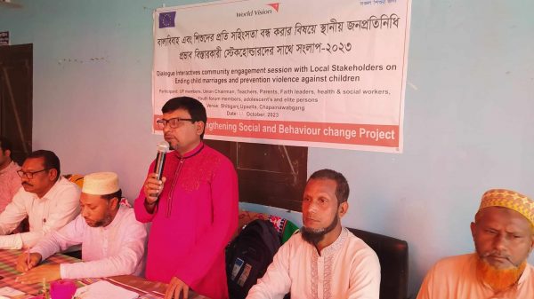 চাঁপাইনবাবগঞ্জের শিবগঞ্জ উপজেলার বাল্যবিবাহ এবং শিশুদের প্রতি সহিংসতা বন্ধ করার বিষয়ে ইউপি সদস্য, শিক্ষক/শিক্ষিকা, পিতা/মাতা, প্রভাব বিস্তারকারী স্টেকহোল্ডার, ছাত্র/ছাত্রী, অভিভাবক, সমাজের স্থানীয় ব্যক্তি ও শিশু সুরক্ষা কমিটির সদস্যদের সাথে মতবিনিময় সভা হয়। রবিবার সকালে কানসাট ইউনিয়ন পরিষদে ওয়ার্ল্ড ভিশন বাংলাদেশর Strenthening Social & Behavoiur Change Project আয়োজনে ও ইউনিসেফ বাংলাদেশের অর্থায়নে এই মতবিনিময় হয়। জেলা প্রোগ্রামার উত্তম মন্ডল এর সঞ্চালনায় বক্তব্য রাখেন কানসাট ইউনিয়ন পরিষদের চেয়ারম্যান সেফুউল মুলক, ইসলামী ফাউন্ডেশন এর সদস্য আব্দুর রহিম, সহকারী শিক্ষক ফারুক আহমেদ, আতিকা জাহান, আলী হায়দার বাপ্পিসহ অন্যরা। বক্তারা বলেন, বাল্যবিবাহ প্রতিরোধে বিভিন্ন পর্যায়ের কমিটির কার্যক্রম সক্রিয় ও জোরদার করলে বাল্যবিবাহ প্রতিরোধে একটি মাইলফলক তৈরী করা সম্ভব হবে।