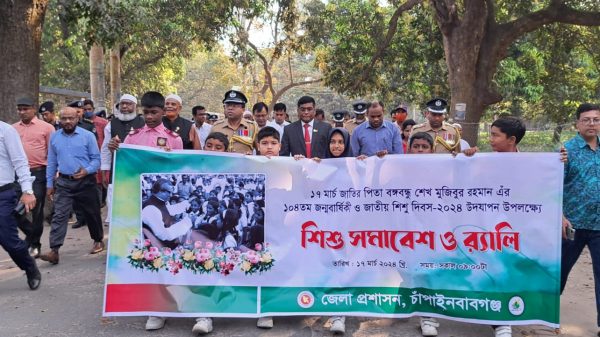 নেসকো লিমিটেড, আঞ্চলিক পাসপোর্ট অফিস, হরিমোহন উচ্চ বিদ্যালয়, কল্যাণী মহিলা সংসদ, গার্ল গাইডস, জনস্বাস্থ্য প্রকৌশল অধিদপ্তরসহ বিভিন্ন সরকারি ও বেসরকারি প্রতিষ্ঠান। পরে সকাল সাড়ে ১০টায় শিশু শিক্ষার্থীদের নিয়ে আলোচনা সভা, মিলাদ ও মোনাজাত, বিশেষ প্রার্থণাসহ বিভিন্ন কর্মসুচী গ্রহণ করা হয়। রচনা, কুইজ ও চিত্রাংকন প্রতিযোগিতার আয়োজন করে জেলা প্রশাসন ও জেলা শিশু একাডেমী। এছাড়াও জেলার সকল উপজেলায় নানা আয়োজনের মধ্যদিয়ে বঙ্গবন্ধু শেখ মুজিবুর রহমানের জন্মবার্ষিকী ও জাতীয় শিশু দিবস উদযাপন করা হয়েছে। অন্যদিকে, জাতির জনক বঙ্গবন্ধুর জন্মদিন উপলক্ষে রবিবার সকালে জেলা আওয়ামীলীগ কার্যালয় থেকে নেতা-কর্মীদের সাথে র্যালি নিয়ে আব্দুল মান্নান সেন্টু মার্কেটের সামনে অবস্থিত বঙ্গবন্ধুর প্রতিকৃতিতে পুস্পস্তবক অর্পণ করেন চাঁপাইনবাবগঞ্জ জেলার সংরক্ষিত আসনের সংসদ সদস্য জারা জাবউন মাহবুব।