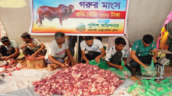 রাজশাহীতে ৬০০ টাকা কেজিতে গরুর মাংস বিক্রি করছে আরএমপি পুলিশ