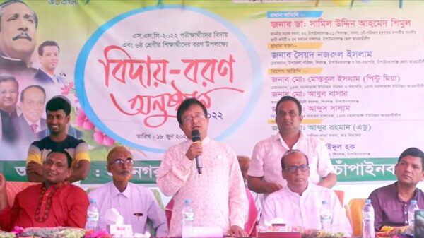 শিবগঞ্জ উপজেলার স্বনামধন্য শিক্ষা প্রতিষ্ঠান হরিনগর উচ্চ বিদ্যালয়ে এসএসসি পরীক্ষার্থীদের বিদায়-নবীন বরণ অনুষ্ঠান হয়েছে। শনিবার বিদ্যালয় মাঠে আয়োজিত অনুষ্ঠানে প্রধান অতিথির বক্তব্য রাখেন, সংসদ সদস্য ডা. সামিল উদ্দিন আহমেদ শিমুল। বিদ্যালয় পরিচালনা কমিটির সভাপতি আবদুর রহমান এডুর সভাপতিত্বে বিশেষ অতিথির বক্তব্য রাখেন, উপজেলা চেয়ারম্যান সৈয়দ নজরুল ইসলাম, রাণীহাটি ডিগ্রি কলেজের অধ্যক্ষ আবুল বাসার, নারী নেত্রী নূরজাহান বেগমসহ অন্যরা। প্রধান শিক্ষক ওবাইদুল হকের সার্বিক ব্যবস্থাপনায় স্থানীয় আওয়ামীলীগ, শিক্ষক-শিক্ষার্থী ও অভিভাবকগণ অনুষ্ঠানে উপস্থিত ছিলেন। শেষে পরীক্ষার্থীদের বিদায় সংবর্ধনা দেয়া হয় এবং ৬ষ্ঠ শ্রেণীর শিক্ষার্থীদের বরণ করে নেয়া হয়।