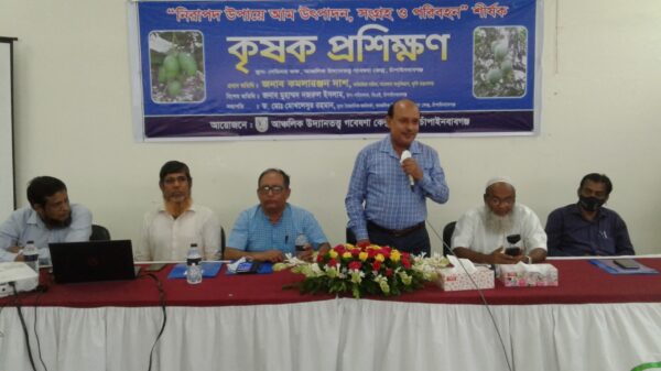 আঞ্চলিক উদ্যানত্তত্ব গবেষণা কেন্দ্রের মূখ্য বৈজ্ঞানিক কর্মকর্তা ড. মোঃ মোখলেসুর রহমানের সভাপতিত্বে প্রশিক্ষণ অনুষ্ঠানে বিশেষ অতিথি ছিলেন কৃষি সম্প্রসারণ অধিদপ্তরের চাঁপাইনবাবগঞ্জ জেলা কার্যালয়ের উপ-পরিচালক মোহাম্মদ নজরুল ইসলাম।