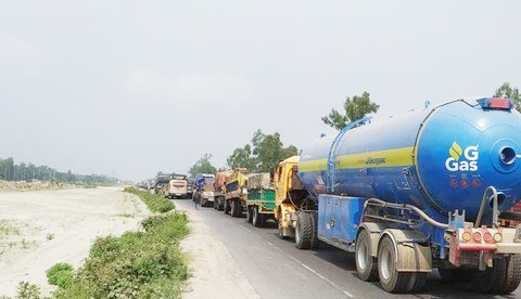 মহাসড়কের সিরাজগঞ্জে ১৫ কিলোমিটার জুড়ে তীব্র যানজট ॥ চরম দূর্ভোগ