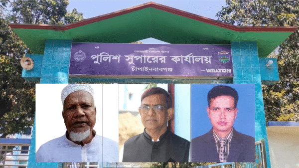 চাঁপাইনবাবগঞ্জ জেলা তাঁতীলীগের সাংগঠনিক সম্পাদক চাঁপাইনবাবগঞ্জ পৌরসভার মাঝপাড়ার মোঃ এরফান আলী খানের ছেলে মোঃ জাহিদুল খান জনি (৩৪)। চাঁপাইনবাবগঞ্জ সদর উপজেলা আওয়ামীলীগের ক্রিড়া সম্পাদক মহারাজপুর ডোলপাড়ার ফেরেশতল্লাহ এর ছেলে মোঃ কাশেদ আলী মাস্টার (৪০)। আওয়ামী মুক্তিযোদ্ধা প্রজন্মলীগগের চাঁপাইনবাবগঞ্জ জেলা শাখার সহ সভাপতি মাঝপাড়ার মোঃ এরফান আলী খানের ছেলে মোঃ ইমরান খাঁন (২৮)। চাঁপাইনবাবগঞ্জ সদর মডেল থানার মামলা নং – ১৯ তারিখ ২২-০৮-২০২৪ ধারা ১৪৩/৪৪৮/৩৮০/৫০৬(২)/১১৪ দঃবিঃ তৎসহ বিষ্ফোরক দ্রব্য নিয়ন্ত্রণ আইনের ৩/৪/৬ ধারায় হওয়া মামলায় এদের গ্রেফতার করা হয়েছে বলে এক প্রেসনোটে নিশ্চিত করে জেলা পুলিশ।