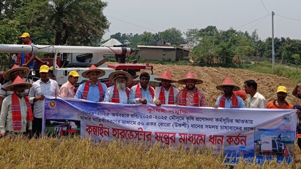 গোমস্তাপুরে কম্বাইন হারভেস্টার যন্ত্র দ্বারা ধান কর্তন কর্মসুচির উদ্বোধন