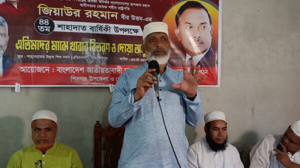 বহুদলীয় গণতন্ত্রের প্রবর্তক, মহান মুক্তিযুদ্ধের বীর সেনানী এবং আত্মনির্ভর বাংলাদেশের রূপকার শহীদ রাষ্ট্রপতি জিয়াউর রহমান বীর উত্তম-এর ৪৪তম শাহাদাৎ বার্ষিকী উপলক্ষে শিবগঞ্জ উপজেলায় অনুষ্ঠিত হয়েছে দোয়া মাহফিল ও খাবার বিতরণ কর্মসূচি। শুক্রবার (৩০ মে) দুপুরে শিবগঞ্জ উপজেলার ছাত্রাজিতপুরে অবস্থিত শাহনেয়ামত উল্লাহ শিশু সদন (এতিমখানা) প্রাঙ্গণে এই আয়োজন করে বাংলাদেশ জাতীয়তাবাদী দল (বিএনপি) শিবগঞ্জ উপজেলা ও পৌর শাখা এবং দলের অঙ্গ ও সহযোগী সংগঠনসমূহ। অনুষ্ঠানে প্রধান অতিথি হিসেবে উপস্থিত ছিলেন বিশিষ্ট ব্যবসায়ী, সমাজসেবক ও বিএনপির কেন্দ্রীয় নেতা বেলাল ই-বাকী ইদ্রিশি। তিনি এতিম শিশুদের মাঝে খাবার বিতরণ করেন এবং শহীদ জিয়ার আত্মার মাগফিরাত কামনায় আয়োজিত বিশেষ মোনাজাতে অংশগ্রহণ করেন। তিনি বলেন, শহীদ জিয়াউর রহমান কেবল একজন রাষ্ট্রনায়কই ছিলেন না, তিনি ছিলেন স্বাধীন বাংলাদেশের স্বপ্নদ্রষ্টা—একজন দূরদর্শী নেতা যিনি জাতিকে আত্মনির্ভরতা, জাতীয়তা ও গণতন্ত্রের চেতনায় উদ্বুদ্ধ করেছিলেন। তাঁর সাহসী নেতৃত্ব ও দেশপ্রেম আজও প্রজন্মের অনুপ্রেরণার উৎস। অনুষ্ঠানে আরও উপস্থিত ছিলেন চাঁপাইনবাবগঞ্জ জেলা বিএনপির আহ্বায়ক কমিটির সদস্য নাজীব ওদুদ, আদীনা কলেজ ছাত্রদলের সভাপতি টাইফুর রহমানসহ বিএনপি, যুবদল, ছাত্রদল, স্বেচ্ছাসেবক দল ও অন্যান্য অঙ্গসংগঠনের নেতাকর্মীরা। বক্তারা তাদের বক্তব্যে শহীদ জিয়ার রাজনৈতিক দর্শন ও দেশের সার্বভৌমত্ব রক্ষায় তাঁর অবদানের কথা তুলে ধরে বলেন, বর্তমান প্রজন্মকে জিয়াউর রহমানের আদর্শে অনুপ্রাণিত হয়ে গণতন্ত্র পুনঃপ্রতিষ্ঠার সংগ্রামে ঐক্যবদ্ধ হতে হবে। এই আয়োজন স্থানীয় জনগণ ও রাজনৈতিক কর্মীদের মাঝে গভীর মানবিক এবং রাজনৈতিক প্রভাব সৃষ্টি করে। শিশুদের প্রতি ভালোবাসা, জাতীয় নেতার প্রতি শ্রদ্ধা এবং রাজনৈতিক ঐক্যের বার্তা-এই তিনটি উপাদান এই কর্মসূচিকে আন্তর্জাতিক মানে উন্নীত করে এক অনন্য দৃষ্টান্তে পরিণত করেছে।