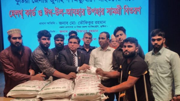 কুষ্টিয়ায় জুলাই গণঅভ্যুত্থানে আহতদের মাঝে হেলথ্ কার্ড ও ঈদ সামগ্রী বিতরণ