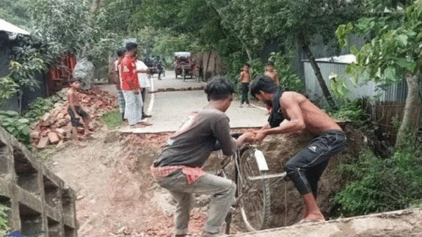 ফরিদপুরের সালথায় ভারী বৃষ্টিতে ব্রিজে ধ্বস ॥ জনদুর্ভোগ চরমে
