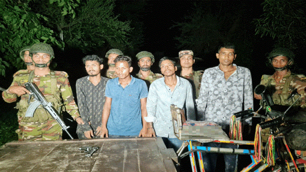 গুরুদাসপুরে সেনাবাহিনীর অভিযানে ৬ ডাকাত আটক