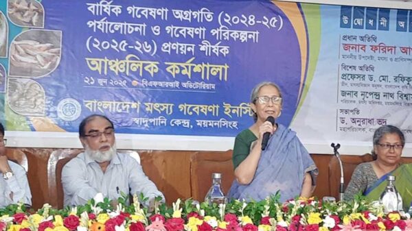 সুষ্ঠু নির্বাচন আয়োজনের চেষ্টা করছে অন্তর্বর্তী সরকার। একটা সুষ্ঠু ও সুন্দর নির্বাচন দিয়ে জনগণের পছন্দের নির্বাচিত সরকারের হাতে দায়িত্ব হস্তান্তরের পরিস্থিতি সৃষ্টি করতে সরকার চেষ্টা করছে বলে জানিয়েছেন মৎস্য ও প্রাণিসম্পদ উপদেষ্টা ফরিদা আখতার। শনিবার সকালে ময়মনসিংহে বাংলাদেশ মৎস্য গবেষণা ইনস্টিটিউট (বিএফআরআই) আয়োজিত ‘বার্ষিক গবেষণা অগ্রগতি পর্যালোচনা ও গবেষণা পরিকল্পনা প্রণয়ন’ শীর্ষক আঞ্চলিক কর্মশালার উদ্বোধন অনুষ্ঠানে এসব কথা বলেন ফরিদা আখতার। তিনি বলেন, নির্বাচন কমিশন এবং সংস্কারের জন্য যেসব উদ্যোগ নেওয়া হয়েছে, সেগুলো হলে রাজনৈতিক দলগুলোর সঙ্গে আলোচনার মাধ্যমে নির্বাচনের যে নির্ধারিত তারিখ ঘোষিত হয়েছে, তার মধ্যে যদি সম্ভব হয় অবশ্যই নির্বাচন হবে। মৎস্য ও প্রাণিসম্পদ উপদেষ্টা বলেন, বাংলাদেশে আমিষের প্রধান উৎস মাছ, এই খাতে নিরাপদ ও টেকসই উৎপাদনের জন্য গবেষণার গুরুত্ব অপরিসীম। এই সম্পদ রক্ষায় গবেষণা প্রযুক্তি সহজবোধ্য ও মাঠপর্যায়ে সম্প্রসারযোগ্য হওয়া দরকার। নিরাপদ মাছ উৎপাদনে ফিডের নিরাপত্তা ও হাওর অঞ্চলে ব্যবহৃত কীটনাশকের ক্ষতিকর প্রভাব তুলে ধরে ফরিদা আখতার বলেন, কীটনাশক নিয়ন্ত্রণে জাতীয় থেকে স্থানীয় পর্যায়ে বিশেষ কমিটি গঠন করা হয়েছে। এর কার্যকর বাস্তবায়নের মাধ্যমে জলজ প্রাণীর নিরাপত্তা নিশ্চিত হবে। তিনি বলেন, মাছের সংকট মোকাবেলায় বিলুপ্তপ্রায় ও বিপন্ন মাছ শনাক্ত করে সংরক্ষণের লক্ষে মৎস্য গবেষণা ইনস্টিটিউট কার্যকর ভূমিকা রাখতে পারে। এ খাতে বিজ্ঞানীদের গবেষণায় সরকার সর্বোচ্চ সহযোগিতা নিশ্চিত করবে বলেও জানান মৎস্য ও প্রাণিসম্পদ উপদেষ্টা। বিএফআরআইয়ের মহাপরিচালক অনুরাধা ভদ্রের সভাপতিত্বে কর্মশালায় আরও বক্তব্য রাখেন বাকৃবির মৎস্যবিজ্ঞান অনুষদের ডিন রফিকুল ইসলাম সরদার এবং মৎস্য অধিদপ্তর ময়মনসিংহের বিভাগীয় পরিচালক নৃপেন্দ্র নাধ বিশ্বাস। কর্মশালায় বিএফআরআইয়ের মুখ্য বৈজ্ঞানিক কর্মকর্তা হারুন উর রশিদ স্বাদুপানির মাছ নিয়ে চলমান ও ভবিষ্যৎ গবেষণার পরিকল্পনা উপস্থাপন করেন। কর্মশালায় বিভিন্ন জেলার বিজ্ঞানী, মৎস্য কর্মকর্তাসহ খামারিরা অংশ নেন।