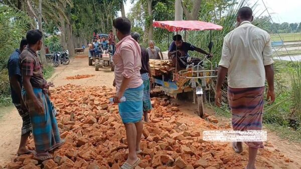 নওগাঁয় স্থানীয়দের উদ্যোগে এক কিলোমিটার রাস্তা সংস্কার