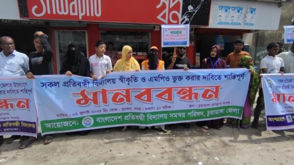 চুয়াডাঙ্গার ১৪টি প্রতিবন্ধী বিদ্যালয়ের স্বীকৃতি ও এমপিওভুক্তির দাবীতে মানববন্ধন