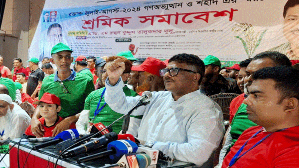 বিএনপির কেন্দ্রীয় নেতা সাবেক মন্ত্রী অ্যাডভোকেট এম রুহুল কুদ্দুস তালুকদার দুলু বলেছেন, বিএনপি কখনো কোন গুম, হত্যা, সন্ত্রাস কে প্রশ্রয় দেয় না, ভবিষ্যতেও দিবে না। গুম, হত্যা, সন্ত্রাস যেই করুক, তাদের দ্রুত আটক করে বিচারের আওতায় আনতে হবে। ঢাকার রাস্তার ব্যবসায়ী সোহাগ হত্যার সাথে জড়িত সকলকে আইনের আওতায় আনার দাবী জানিয়ে তিনি বলেন, বিএনপির ভারপ্রাপ্ত চেয়ারপার্সন তারেক রহমান এদের সকলকে স্থায়ীভাবে দল থেকে বহিস্কার করার সিন্ধান্ত দিয়েছেন। তিনি বলেন, ‘আমরা লক্ষ্য করছি, একটি রাজনৈতিক দল বিএনপির বিরুদ্ধে মিথ্যা অভিযোগ করছে, বিএনপিকে বিতর্কিত করার জন্য, চাঁদাবাজ বানানোর জন্য, বিভিন্ন ভাবে বিএনপির ভাবমুর্তি নষ্ট করার জন্য। যেভাবে ১৫ বছর ষড়যন্ত্র করা হয়েছে, ঠিক সেভাবেই সংসদ নির্বাচনের আগে বিএনপির ভাবমূর্তি নষ্ট করার চেষ্টা করা হচ্ছে। আমরা পরিষ্কার ভাবে বলতে চাই, বিএনপিতে কোন চাঁদাবাজ ও সন্ত্রাসীর জায়গা হবে না। ’দুলু বলেন, ‘যারা নির্যাতিত তারা মজলুম। তাই বিএনপি’র প্রতিটা নেতাকর্মীই মজলুম।’ শনিবার দুপুরে নাটোর জেলা পরিষদ মাল্টিপারপাস অডিটোরিয়ামে গনঅভ্যুত্থান ও শহীদ এর স্বরণে জেলা জাতীয়তাবাদী পরিবহন শ্রমিক দল আয়োজিত শ্রমিক সমাবেশে তিনি এসব কথা বলেন। নাটোর জেলা শ্রমিক দলের সভাপতি আবু রায়হান ভুলুর সভাপতিত্বে সমাবেশে অন্যান্যের মধ্যে আরো বক্তব্য রাখেন, জাতীয়তাবাদী শ্রমিক দলের কেন্দ্রীয় সহ-সভাপতি ও জাতীয়তাবাদী রেলওয়ে শ্রমিক কর্মচারী সভাপতি রফিকুল ইসলাম, নাটোর জেলা বিএনপির আহবায়ক রহিম নেওয়াজ, জেলা পরিবহন শ্রমিক ইউনিয়নের সভাপতি শফিকুল ইসলাম বুলবুল, ট্রাক ট্যাংকলরী ও কার্ভাডভ্যানের সভাপতি আব্দুল জলিল, জেলা বিএনপির সাবেক আহবায়ক শহিদুল ইসলাম বাচ্চু, যুগ্ম আহবায়ক মোস্তাফিজুর রহমান শাহিন ও সাইফুল ইসলাম আফতাব, নাটোর পৌরসভার সাবেক মেয়র কাজী শাহ আলম ও শেখ এমদাদুল হক আল মামুন প্রমুখ। দুলু আরো বলেন, গত সাড়ে ১৫ বছর আওয়ামীলীগের জুলুম নির্যাতন, হত্যা গুমে অতিষ্ট হয়ে এদেশের ছাত্র-জনতা শ্রমিক কৃষকসহ সকল শ্রেণী পেশার মানুষ পথে নেমে এসে গত ৫ আগস্ট আওয়ামীলীগকে বিদায় করেছে, তাদের পতন হয়েছে। আমরা সফল হয়েছি। সেই আন্দোলনে দেশের শ্রমিকরা গুরুত্বপূর্ন ভৃমিকা পালন করেছে। শেখ হাসিনা হাসপাতালে গিয়ে সেদিন আহতদের চিকিৎসা না করার জন্য চিকিৎসকদের নির্দেশ দিয়েছে। অথচ সেদিন ঢাকার সাধারণ রিকশাওয়ালারা জীবন বাজী রেখে আহত নিহতদের হাসপাতালে নিয়ে গেছে। তিনি বলেন, লন্ডনে বিএনপির ভারপ্রাপ্ত চেয়ারপার্সন তারেক রহমান ও অন্তবর্তী সরকারের প্রধান ড. ইউনুস আলীর মধ্যে বৈঠকের পর নির্বাচন বিষয়ে দেশের মানুষ একটা আশার আলো দেখতে পেয়েছে। এখ