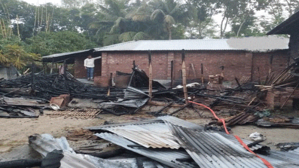 বাগমারায় আগুনে একটি বাড়ি ভষ্মিভূত ॥ ১০ লক্ষাধিক টাকার ক্ষতি