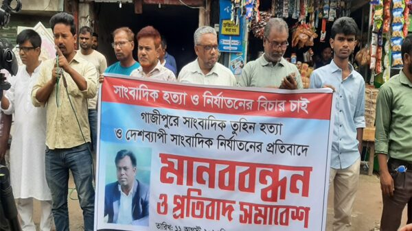 সাংবাদিক তুহিন হত্যার প্রতিবাদে মানববন্ধন