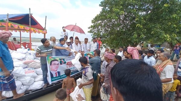 চাঁপাইনবাবগঞ্জে বন্যাদুর্গত এলাকায় এমপি হারুনের ত্রাণ বিতরণ
