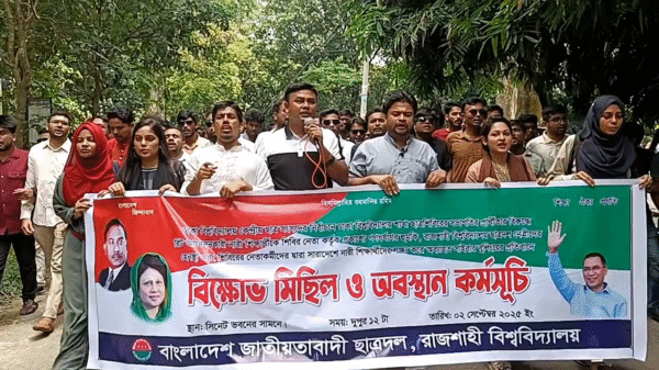 রাজশাহী বিশ্ববিদ্যালয় ছাত্রদলের বিক্ষোভ মিছিল