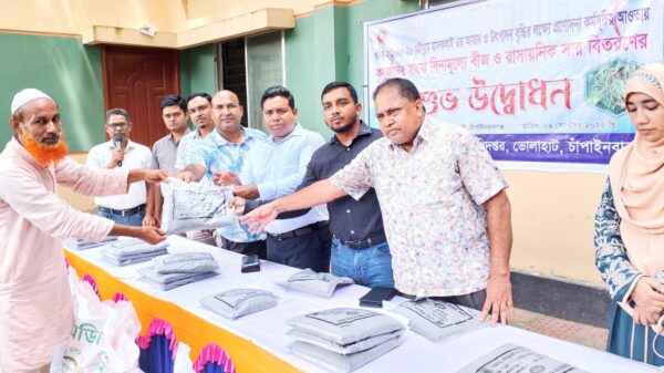 ভোলাহাটে বিনামূল্যে ৫৫০ কৃষক’কে মাসকালাই বীজ ও সার প্রদান