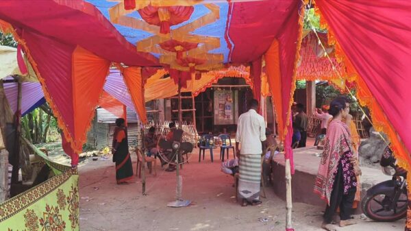 নওগাঁর নিয়ামতপুরে পূজা মন্ডপে বক্স বাজানোকে কেন্দ্র করে সংঘর্ষে আহত হয়েছে শ্রী স্বপন হাওলাদার (৫৫), শ্রী শয়ন হাওলাদার, (৪০), শ্রী অর্জুন হাওলাদার (৩৬) ও শ্রী সুপ্রজিৎ (২৫)। এ ঘটনায় শ্রী দিজেন চন্দ্র কবিরাজ (৫৮) কে আটক করেছে পুলিশ। এ ঘটনায় অর্জুন বাদী হয়ে শ্রী কনক (৩২), শ্রী অমৃত (২৫), শ্রী দিজেন চন্দ্র কবিরাজ (৫৮) ও শ্রীমতী গীতা রানী (৫০) কে অভিযুক্ত করে থানায় অভিযোগ দায়ের করা হয়েছে। সোমবার (২৯ সেপ্টেম্বর) দিবাগত রাত ১১ টার দিকে উপজেলার শ্রীমন্তপুর ইউনিয়নের দারাজপুর (হিন্দু পাড়া) গ্রামের বারোয়ারী দূর্গা মন্দিরে এ ঘটনা ঘটে। আহতরা হলেন, উপজেলার শ্রীমন্তপুর ইউনিয়নের দারাজপুর (হিন্দু পাড়া) গ্রামের মৃত রূহিনী হাওলাদারের ছেলে শ্রী স্বপন হাওলাদার, শ্রী স্বপন হাওলাদারের ছেলে শ্রী সুপ্রজিৎ, মৃত লক্ষণ হাওলাদারের ছেলে শ্রী শয়ন হাওলাদার ও শ্রী অর্জুন হাওলাদার। আটককৃত ব্যক্তি হলেন, একই গ্রামের মৃত ভিম চন্দ্রের ছেলে শ্রী দিজেন চন্দ্র কবিরাজ।