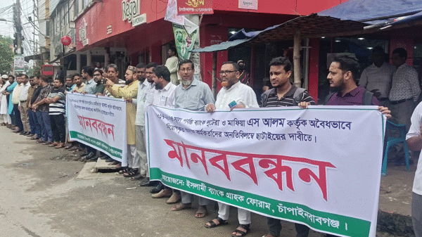চাঁপাইনবাবগঞ্জে ইসলামী ব্যাংকের সামনে গ্রাহক ফোরামের মানববন্ধন