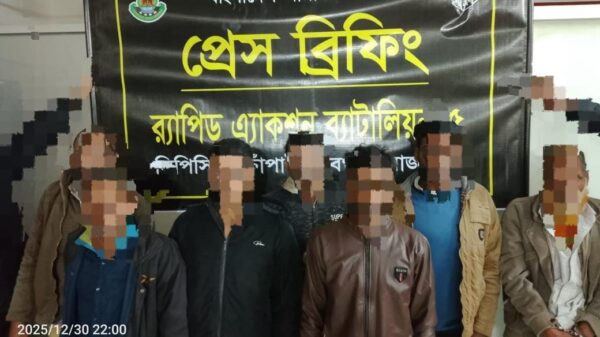 র্যাবের মাদক বিরোধী বিশেষ অভিযানে ৭ মাদক কারবারী আটক হয়েছে। এসময় ইয়াবা ও হেরোইন উদ্ধার করা হয়েছে। মঙ্গলবার (৩০ ডিসেম্বর) রাত সাড়ে ৮টার দিকে চাঁপাইনবাবগঞ্জ শিবগঞ্জ থানাধীন কালিনগর গ্রাম থেকে এদের গ্রেফতার এবং মাদকগুলো উদ্ধার করা হয়। এঘটনায় আটককৃতরা হচ্ছে, জেলার শিবগঞ্জ উপজেলার চক কালিনগর গ্রামের মৃত আবুল হোসেন এর ছেলে মোঃ মিজানুর রহমান (৪৫), কালিনগর ইংলিশ মোড়ের মৃত মেসের আলীর ছেলে মোঃ নাসির (৫৭), মোঃ হাবিবুর রহমানের ছেলে মোঃ বাবু (২৬), মৃত আলফাজ উদ্দিন মন্ডলের ছেলে মোঃ সিরাজুল ইসলাম (৫০), সতেরো রুপিয়া চামাগ্রামের মোঃ আমিরুল ইসলামের ছেলে মোঃ কাওছার (২৬), কালিনগর চক ইংলিশ মোড়ের মোঃ সাদেকুল ইসলামের ছেলে মোঃ সাহালাল ইসলাম (২৯) এবং রুপনগর গ্রামের মৃত সাগর আলীর ছেলে মোঃ এনাদুল (৫০)। র্যাবের এক প্রেসনোটে বুধবার জানানো হয়, চাঁপাইনবাবগঞ্জ শিবগঞ্জ থানার কালিনগর গ্রাম হতে মাদক চক্রের ৭ জন মাদক কারবারীকে ৫৯ পিচ ইয়াবা ও ১০ গ্রাম হেরোইনসহ গ্রেফতার করেছে র্যাব-৫ এর চাঁপাইনবাবগঞ্জ ক্যাম্পের সদস্যরা। ৩০ ডিসেম্বর রাত সাড়ে ৮টার দিকে চাঁপাইনবাবগঞ্জ জেলার শিবগঞ্জ থানার ঘোড়াপাখিয়া ইউনিয়নের কালিনগর গ্রামস্থ কলা বাগানের ভিতর হতে ৫৯ পিচ ইয়াবা ও ১০ গ্রাম হেরোইনসহ মাদক কারবারী মোঃ মিজানুর রহমান (৪৫), মোঃ নাসির (৫৭), মোঃ বাবু (২৬), মোঃ সিরাজুল ইসলাম (৫০), মোঃ কাওছার (২৬), মোঃ সাহালাল ইসলাম (২৯), মোঃ এনাদুল (৫০)’কে ঘটনাস্থল হতে আটক করা হয়। গ্রেফতারকৃত আসামী ও উদ্ধারকৃত আলামত পরবর্তী আইনানুগ ব্যবস্থা গ্রহণের জন্য শিবগঞ্জ থানায় হস্তান্তর করা হয়।