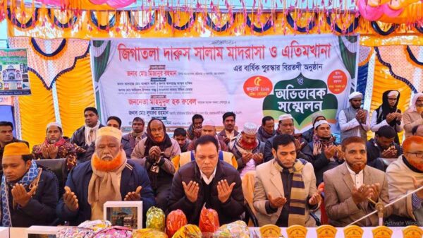 তিনি আরও বলেন, দেশের ইতিহাসের সবচেয়ে নির্যাতিত, আপোশহীন ও সাহসী জননেত্রী ছিলেন বেগম খালেদা জিয়া। তার মৃত্যু জাতির জন্য এক অপূরণীয় ক্ষতি। ব্যক্তিগত জীবনে সীমাহীন ত্যাগ ও বেদনা ধারণ করেও তিনি কখনো স্বৈরাচারী শক্তির কাছে মাথা নত করেননি। নির্যাতন, শোষণ ও নানা প্রতিবন্ধকতার মধ্যেও গণতন্ত্র, ন্যায়বিচার ও জনগণের অধিকারের প্রশ্নে তিনি ছিলেন অবিচল। তার রাজনৈতিক জীবন ত্যাগ ও সংগ্রামের এক উজ্জ্বল দৃষ্টান্ত হয়ে থাকবে। দেশের সর্বস্তরের মানুষ গভীর শোক ও শ্রদ্ধার সঙ্গে তাকে স্মরণ করছে। তার আত্মার মাগফেরাত কামনা করছে জাতি। অনুষ্ঠানে সভাপতিত্ব করেন জিগাতলা দারুস সালাম মাদরাসা ও এতিমখানা পরিচালনা পর্ষদের সভাপতি মো. মিজানুর রহমান। এতে উপজেলা বিএনপির যুগ্ম আহ্বায়ক মো. আব্দুল মান্নান হীরা, গৌরিপুর ইউনিয়ন বিএনপির সভাপতি মো. আব্দুল মমিন, সাধারণ সম্পাদক (ভারপ্রাপ্ত) মো. আকরাম হোসেনসহ মাদ্রাসার শিক্ষকবৃন্দ, অভিভাবক, স্থানীয় গণ্যমান্য ব্যক্তি ও বিএনপির বিভিন্ন স্তরের নেতাকর্মীরা উপস্থিত ছিলেন।