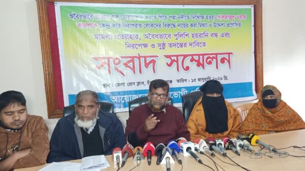 মিথ্যা ও ষড়যন্ত্রমূলক মামলা প্রত্যাহারের দাবীতে চাঁপাইনবাবগঞ্জে সংবাদ সম্মেলন