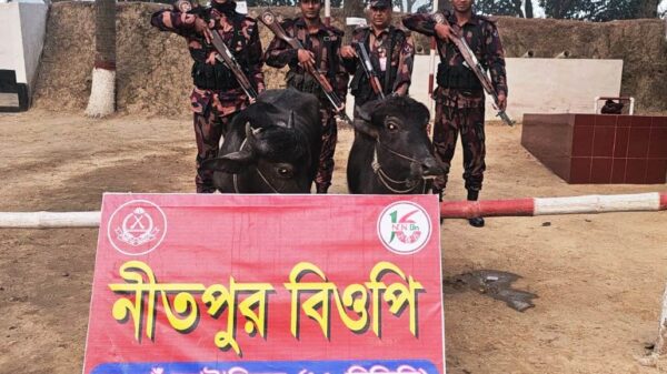 নিতপুর সীমান্তে মালিকবিহীন ২টি ভারতীয় মহিষ জব্দ
