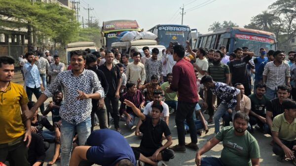 বকেয়া দাবিতে শ্রমিকদের ঢাকা-সিলেট মহাসড়ক অবরোধ