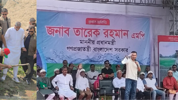 সোমবার (১৬ মার্চ) দুপুরে দিনাজপুরের কাহারোল উপজেলার বলরামপুরে সাহাপাড়া খাল খনন কর্মসূচির উদ্বোধন শেষে আয়োজিত এক বিশাল জনসভায় প্রধান অতিথির বক্তব্যে তিনি এসব কথা বলেন। প্রধানমন্ত্রী বলেন, নির্বাচনের আগে আমরা দেশের মানুষের কাছে অনেক প্রতিশ্রুতি দিয়েছিলাম। আমরা জানি, বাংলাদেশের অধিকাংশ মানুষ গ্রামে বাস করেন এবং তাদের বড় একটি অংশ কৃষির ওপর নির্ভরশীল। আমরা দৃঢ়ভাবে বিশ্বাস করি-কৃষক বাঁচলে দেশ বাঁচবে। তাই কৃষকদের স্বস্তি দিতে ইতিমধ্যে মন্ত্রিসভার বৈঠকে কৃষিঋণ মওকুফের প্রয়োজনীয় ব্যবস্থা গ্রহণ করেছি। এর আগে দুপুর সাড়ে ১২টার দিকে কাহারোল উপজেলা থেকে একযোগে দেশের ৫৩টি খালের খনন ও পুনঃখনন কর্মসূচির আনুষ্ঠানিক উদ্বোধন করেন প্রধানমন্ত্রী। উদ্বোধনকালে তিনি নিজেই কোদাল হাতে মাটি কেটে এই মহতী কার্যক্রমের সূচনা করেন। এরপর তিনি সেখানে একটি ফলদ গাছের চারা রোপণ করেন। কর্মসূচির উদ্বোধনকে কেন্দ্র করে পুরো উত্তরবঙ্গে উৎসবমুখর পরিবেশ বিরাজ করে। উদ্বোধনী অনুষ্ঠানে প্রধানমন্ত্রীর সফরসঙ্গী হিসেবে উপস্থিত ছিলেন বিএনপি মহাসচিব এবং স্থানীয় সরকার, পল্লী উন্নয়ন ও সমবায় মন্ত্রী মির্জা ফখরুল ইসলাম আলমগীর, সমাজকল্যাণ মন্ত্রী ডা. এ জেড এম জাহিদ হোসেন, পানিসম্পদ মন্ত্রী মো. শহীদ উদ্দিন চৌধুরী এ্যানী, দুর্যোগ ব্যবস্থাপনা ও ত্রাণমন্ত্রী আসাদুল হাবিব দুলু এবং পানিসম্পদ প্রতিমন্ত্রী ফরহাদ হোসেন আজাদসহ কেন্দ্রীয় ও স্থানীয় নেতৃবৃন্দ।